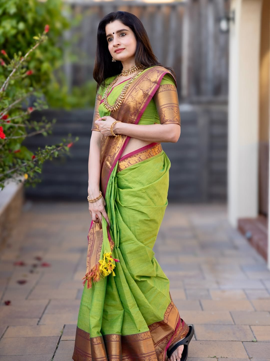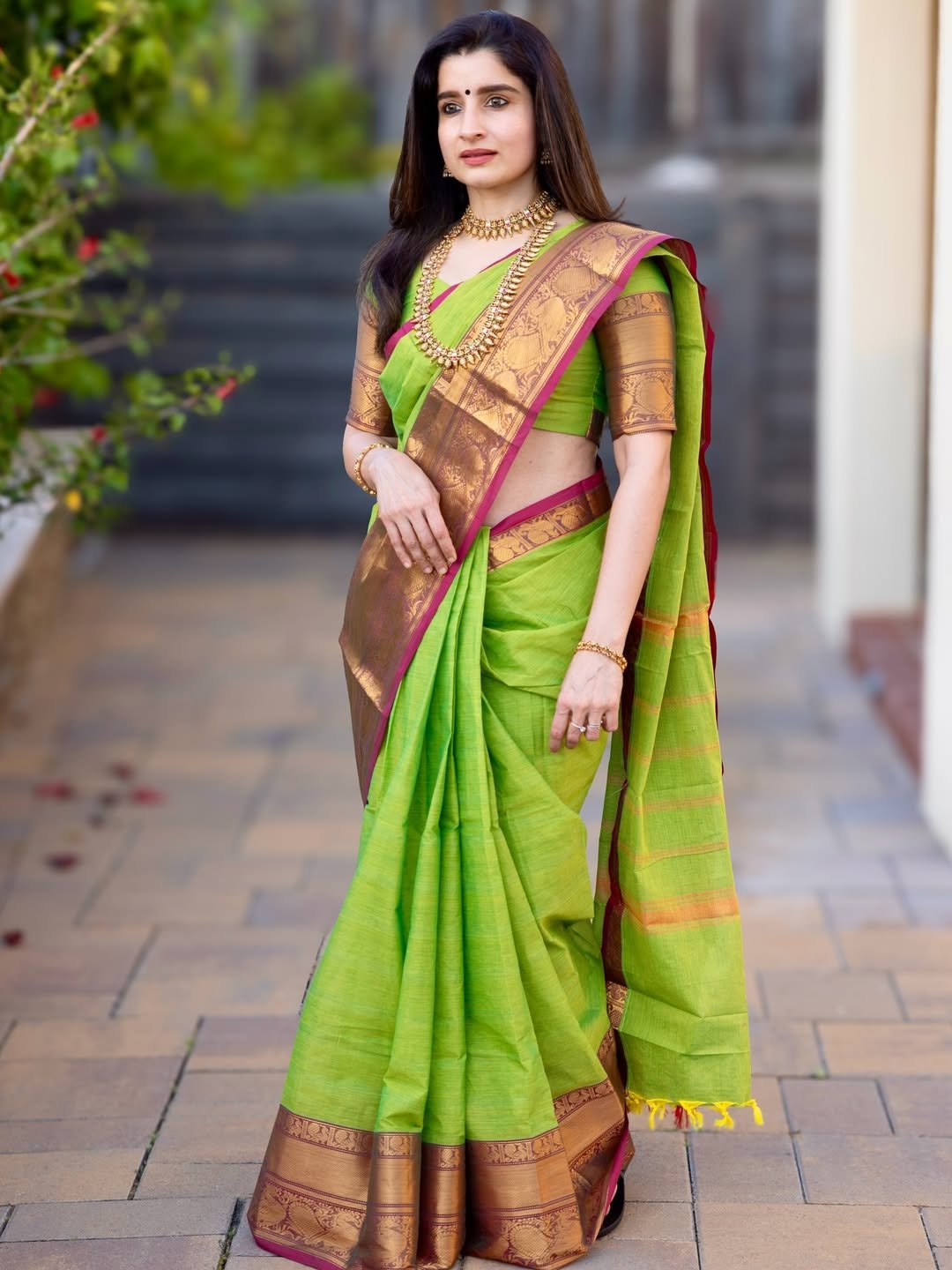 Fabric : Kanchi Cotton with borders, With running blouse