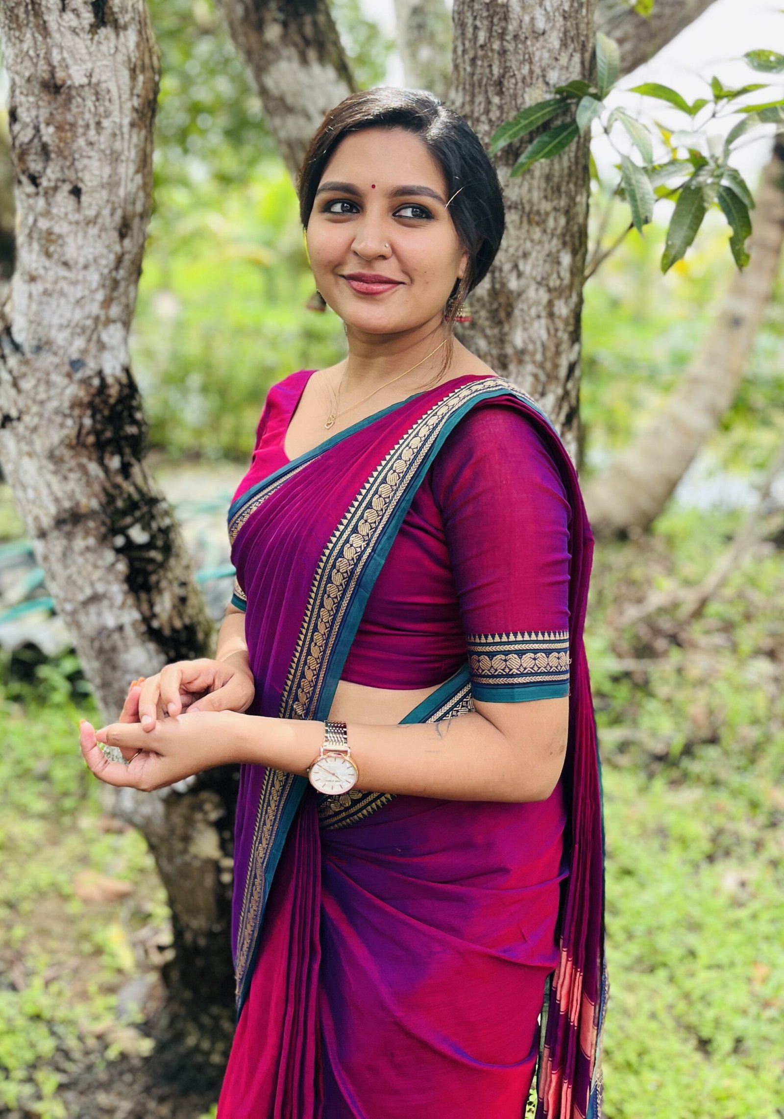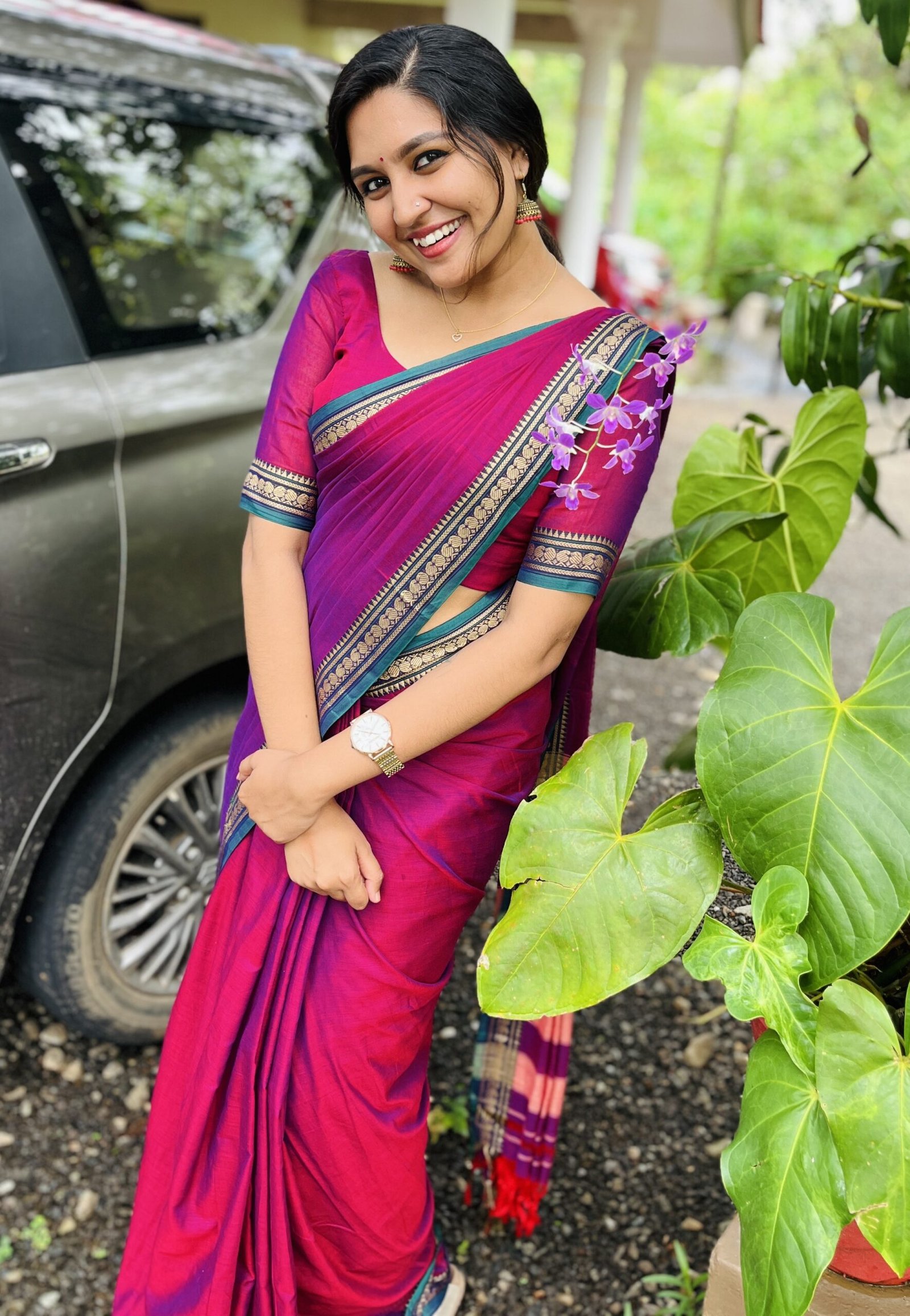 COLOR double shade magenta purple , thread woven borders
