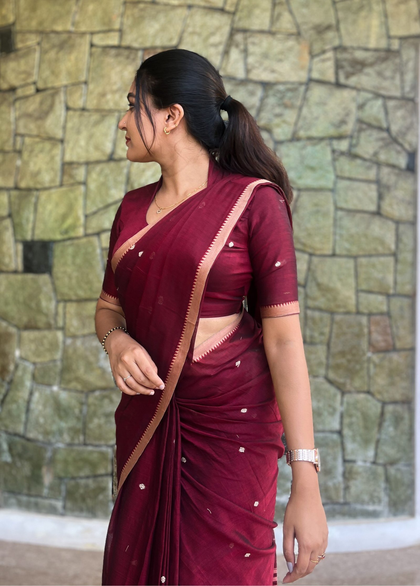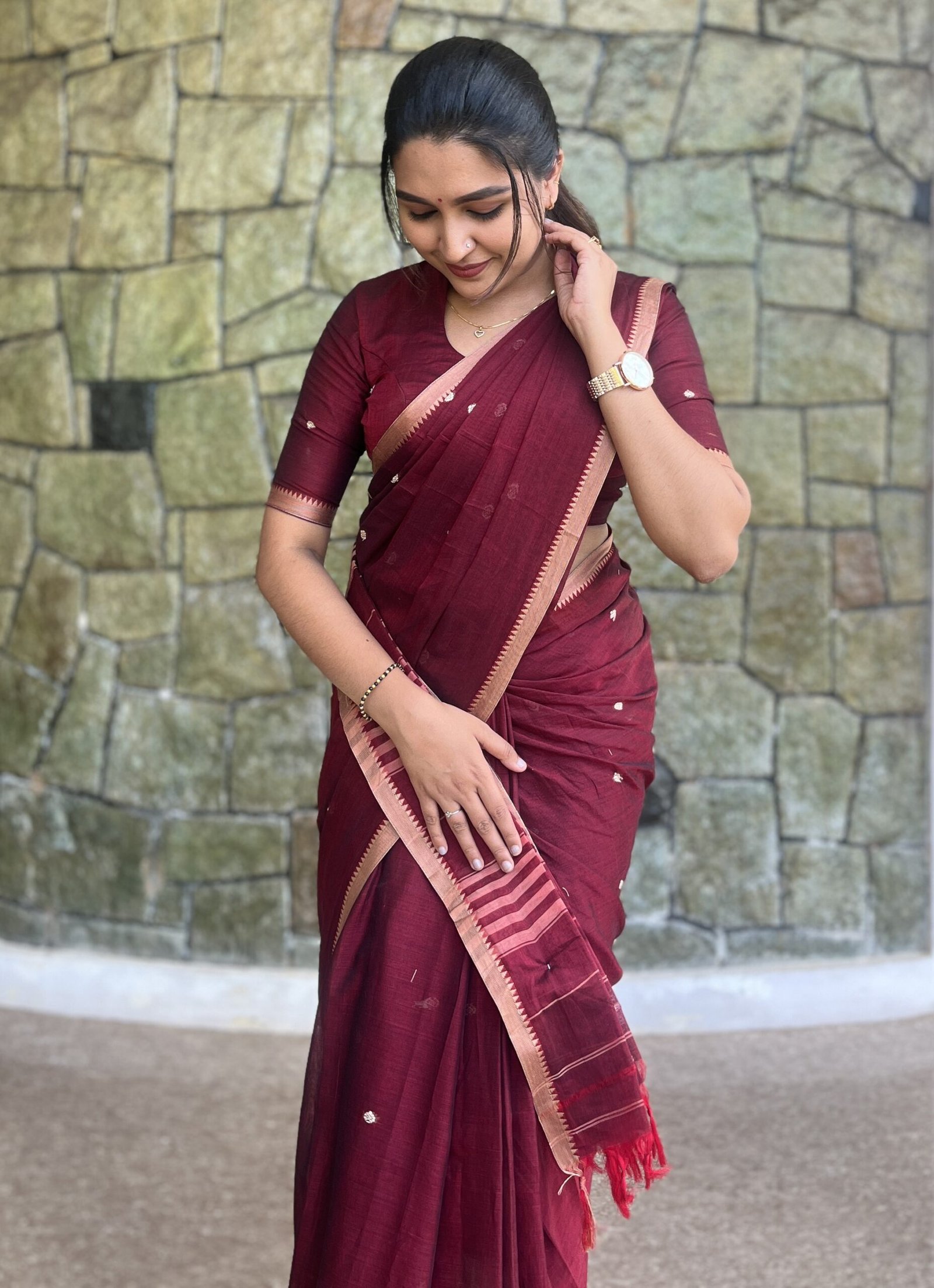Narayanpet sarees are handwoven with exceptional precision and expertise. The weaving process incorporates intricate techniques that highlight the unique characteristics of these sarees. They are usually woven from  cotton threads.