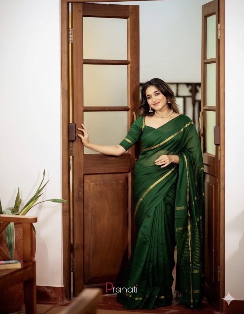 Maheshwari silk saris are crafted from a blend of silk and cotton, which gives them a unique, lightweight feel while maintaining the luxurious sheen of silk.