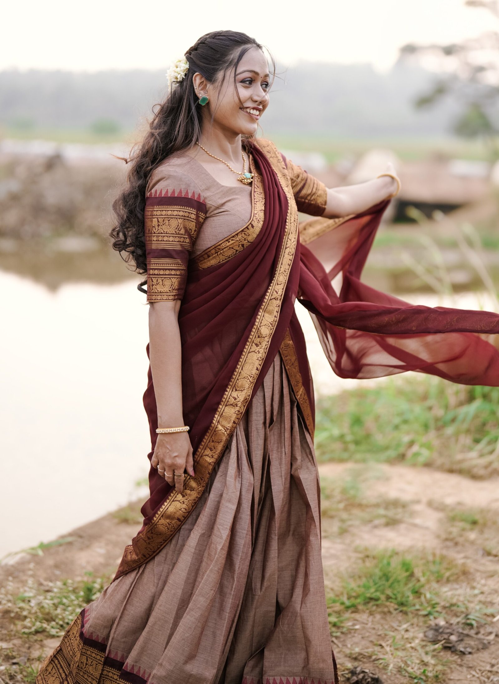 Fully Stitched Option : Blouse and Skirt stitched with custom measurements / Crepe lining / with or without blouse pads.