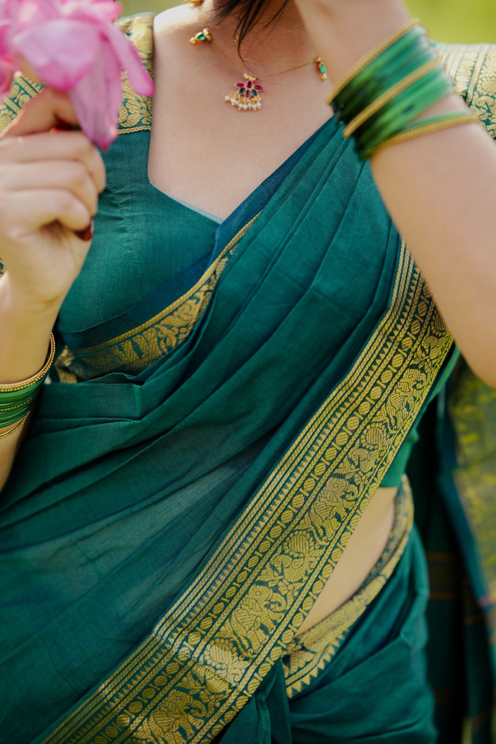 Fabric : Kanchi Cotton with borders, With running blouse